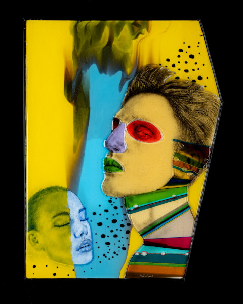 Kilnformed glass, glass powder imagery, steel 34H X 25W x 2D